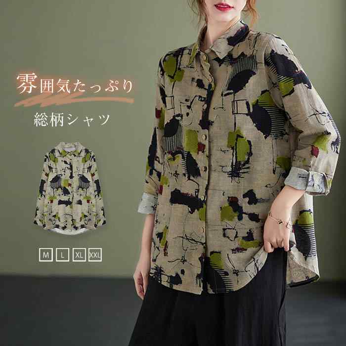 シャツ レディース シャツブラウス 長袖 コットン レディースシャツ トップス 長袖シャツ 長袖トップス 柄 柄シャツ 総柄 春 夏 秋 春夏 カジュアル 日常 ディリー エレガント