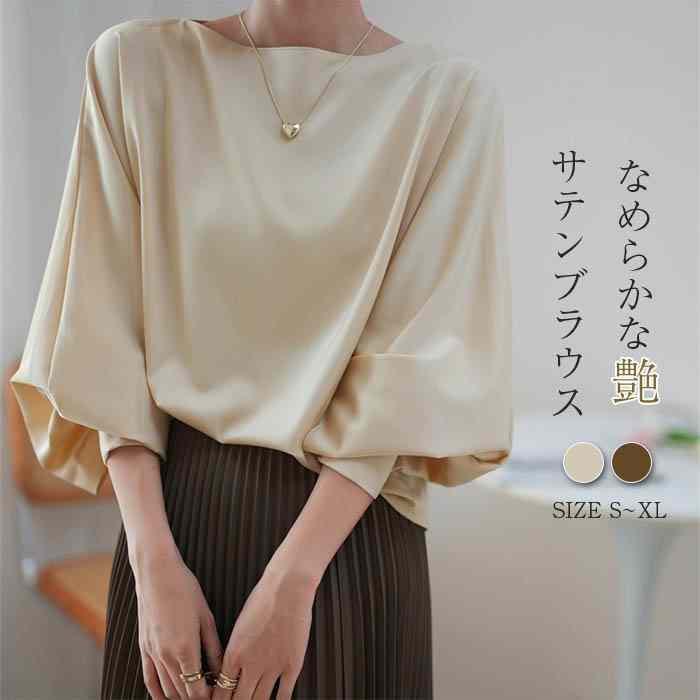さらっとした軽い着心地の艶感のあるサテン生地で洗練されたリッチな表情を演出しエレガントに きちんと感とフェミニンな洒落感を兼ね備えた1枚