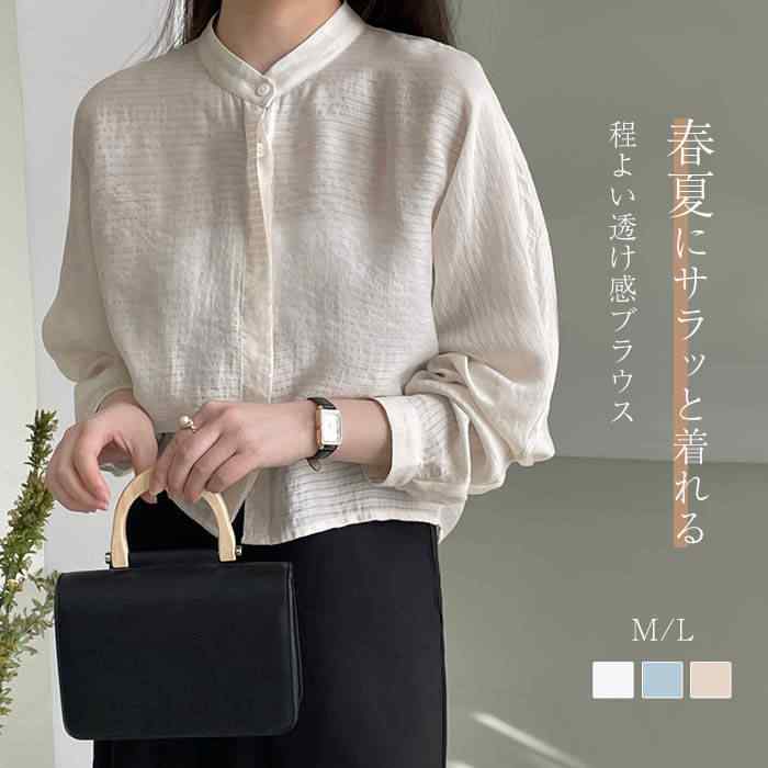 透け感が大人っぽい、お洒落なオーバーシアーシャツ シャツブラウス レディースシャツ バンドカラー 羽織 夏 薄手シャツ 透け感 おしゃれ ショート丈 ショート 20代 30代 40代 50代