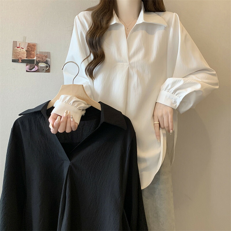 \ シャツ レディース トップス ブラウス Vネック 長袖 襟 ゆったり 夏秋 無地 ビックサイズ 大きいサイズ スキッパーシャツブラウス