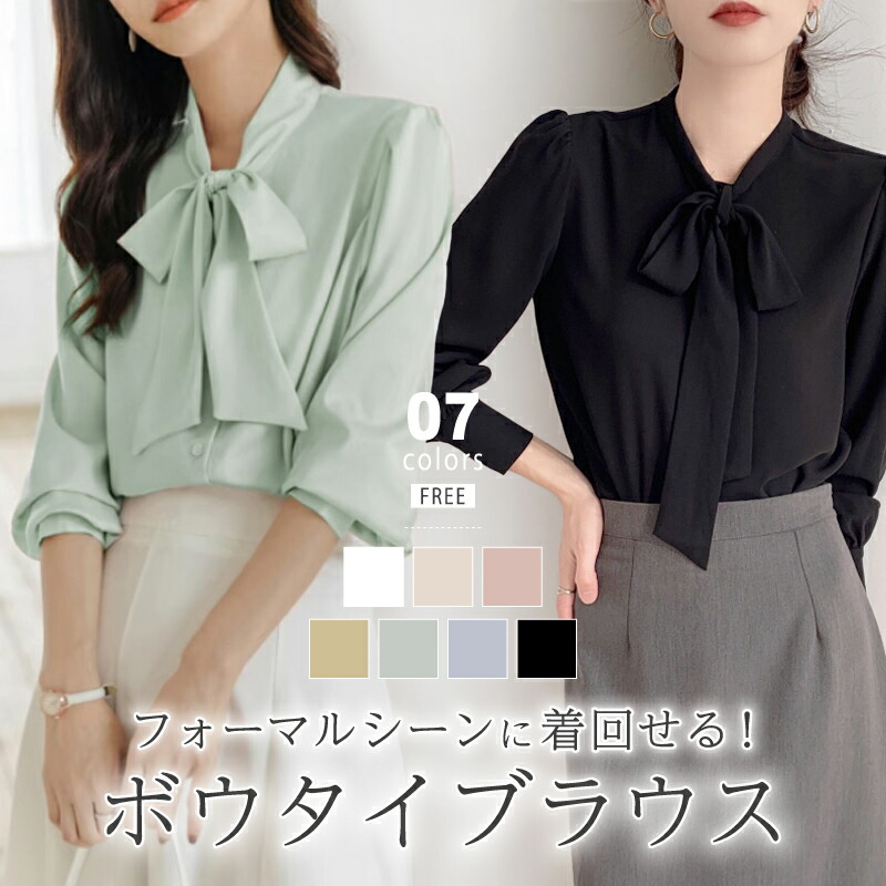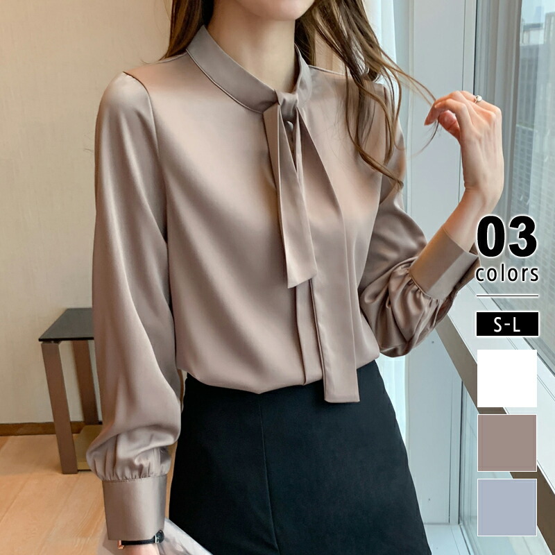きれいめボウタイブラウス シャツブラウス 長袖ブラウス 光沢感 なめらか ボウタイリボン フォーマルブラウス 無地 入学式 入園式 卒業式 卒園式 通勤 着回し 高見え キレイめ 大人可愛い