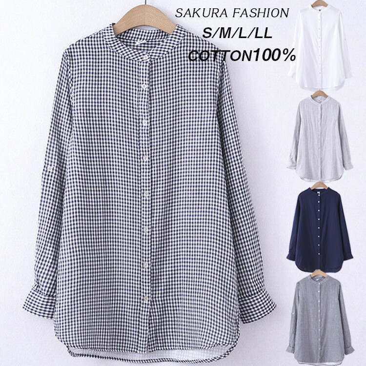 ガーゼシャツ レディース ガーゼ シャツ チュニック スタンドカラーレディースファッション トップス シャツ ブラウス