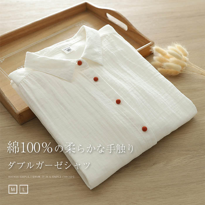 綿100% シャツブラウス レディース ガーゼシャツ シャツ ブラウス 長袖 トップス 春 秋 綿 カジュアル トップス 無地 大きいサイズ ゆったり 体型カバー 通気性 柔軟 優しい 通勤 白