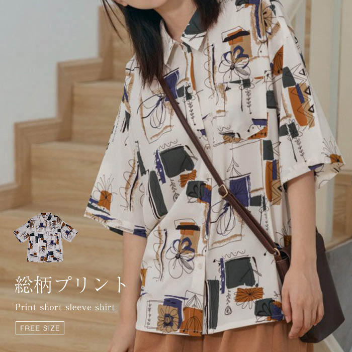 半袖 シャツ レディース 夏 総柄 プリント 総柄シャツ 半袖シャツ シャツブラウス レディース シャツ ブラウス 半袖 トップス 春 夏 羽織り 夏トップス 個性的 原宿風 可愛い