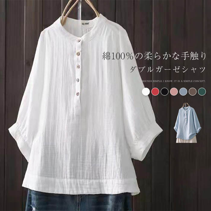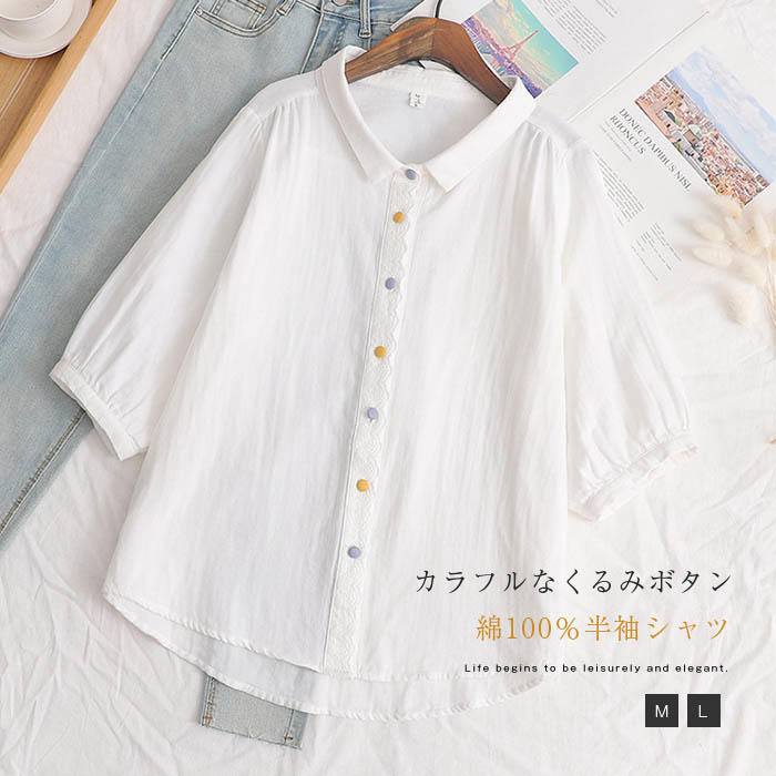 コットン100% シャツブラウス レディース 半袖 夏 シャツ ブラウス 半袖 トップス カジュアル 無地 大きいサイズ 白 黒 ガーゼ 綿 柔軟 シンプル 着回し 着心地