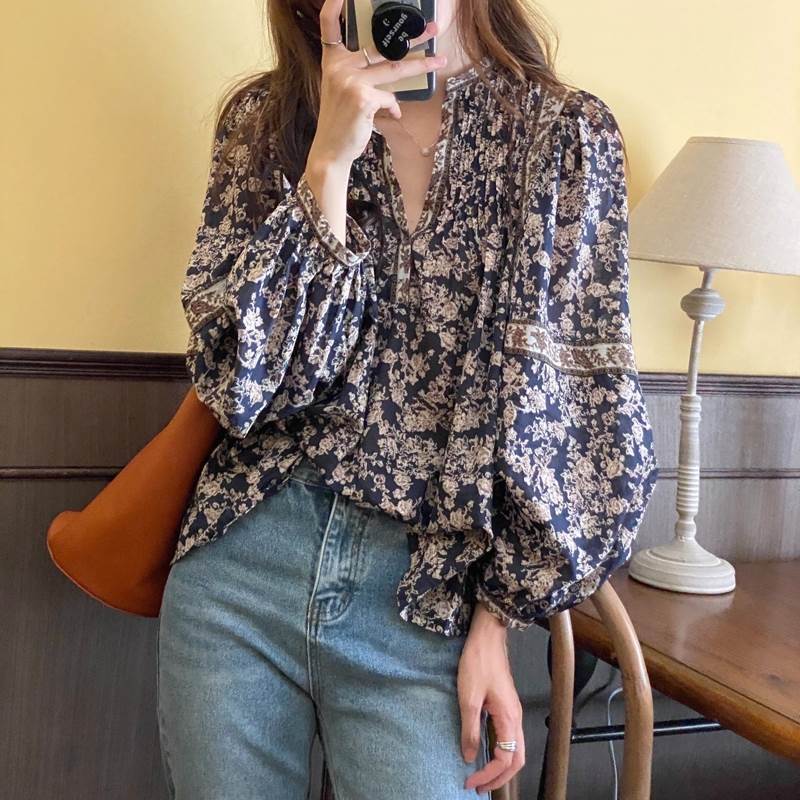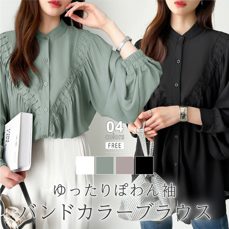 ぽわん袖が可愛い バンドカラー シフォンブラウス とろみシャツレディースファッション トップス シャツ ブラウス
