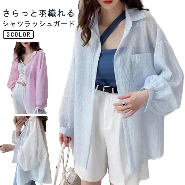 ラッシュガード シャツ 長袖 ビッグシャツ レディース 体型カバー おしゃれ 日焼け止め 羽織りレディースファッション トップス シャツ ブラウス