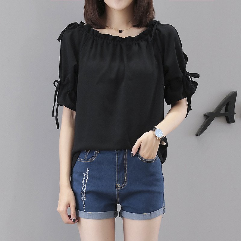 大人可愛いぽわん袖 バックリボンブラウス 半袖 バルーンスリーブレディースファッション トップス シャツ ブラウス