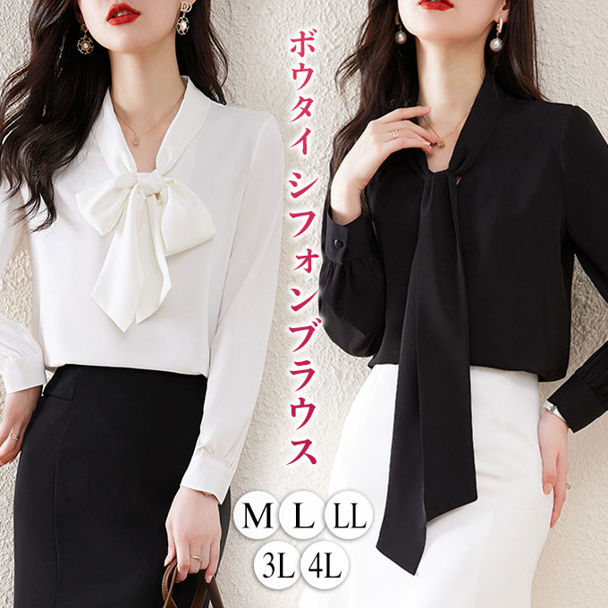 トップス シャツ 白 黒 おしゃれ OL 通勤 スタイル ビジネス 20代 30代 40代 50代 60代 ぽっちゃり 春 夏 秋 冬 XL 2XL 3XL