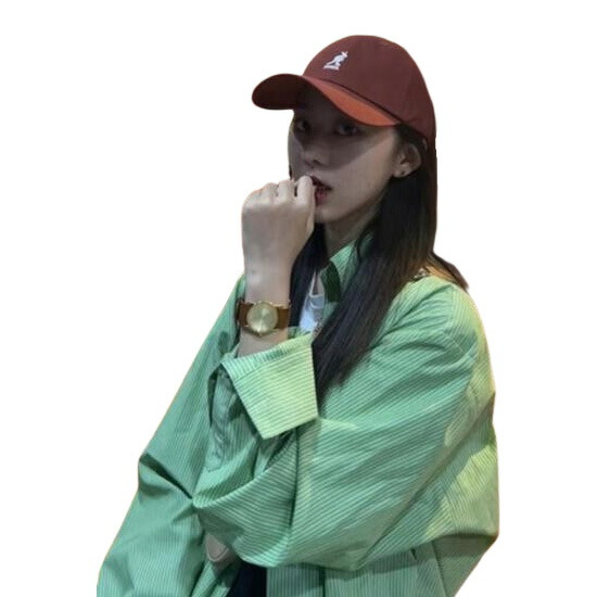 ストライプブラウスシャツトップスカットソーグリーン長袖 シンプルボタン前開き大きいサイズダンス衣装ヒップホップレディースガールズストリート個性的奇抜ゆったり