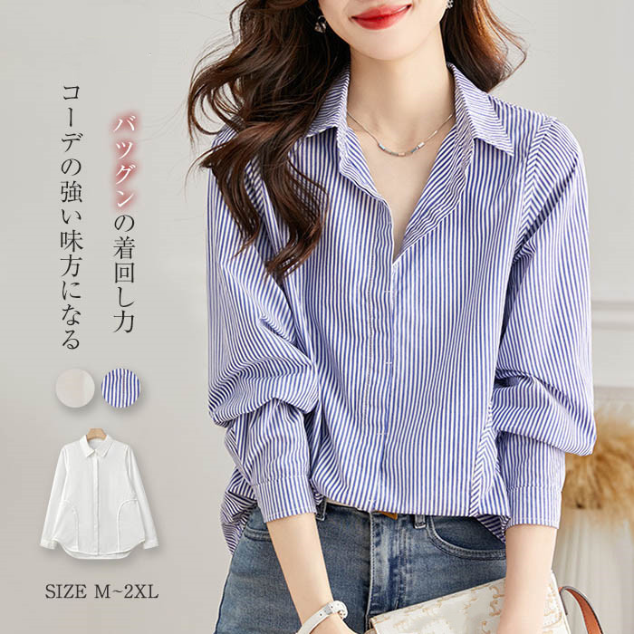 白 シャツ ブラウス レディース 春 夏 秋 半袖 長袖 白シャツ おしゃれ シャツブラウス トップス カジュアル 綿100% 大人 可愛い