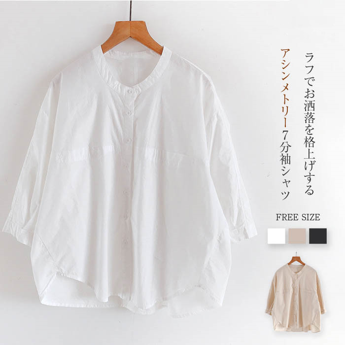 シャツ ブラウス レディース シャツブラウス 7分袖 夏 春 トップス シンプル アシンメトリー ゆったり 体型カバー 大きいサイズ ゆる きれいめ