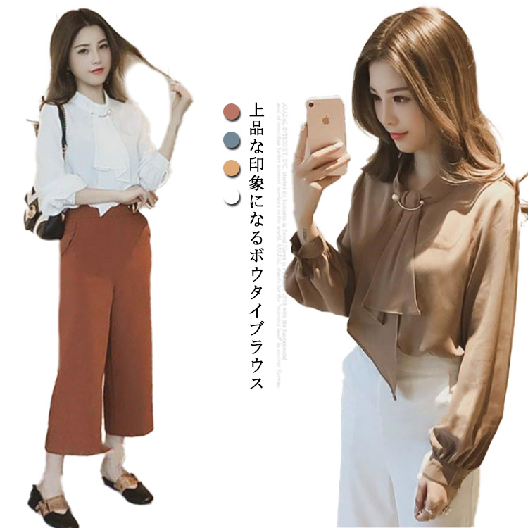 韓国 リボン ブラウス ボウタイ 長袖 シャツ シャツブラウス シンプル おしゃれ 大人 かわいいレディースファッション トップス シャツ ブラウス