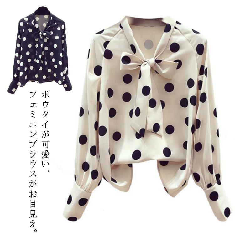 ボウタイ リボン ブラウス シフォン ボウタイブラウス フォーマル リボン シャツ ネック ブラウス レディース 水玉