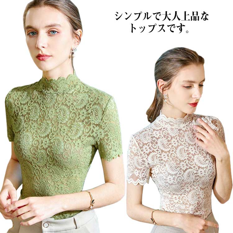 半袖 トップス カットソー レディース 春夏 レース シースルー トップス ブラウス ハイネック シャツ 30代 40代 50代 60代 ミセス セクシー シンプル 黒