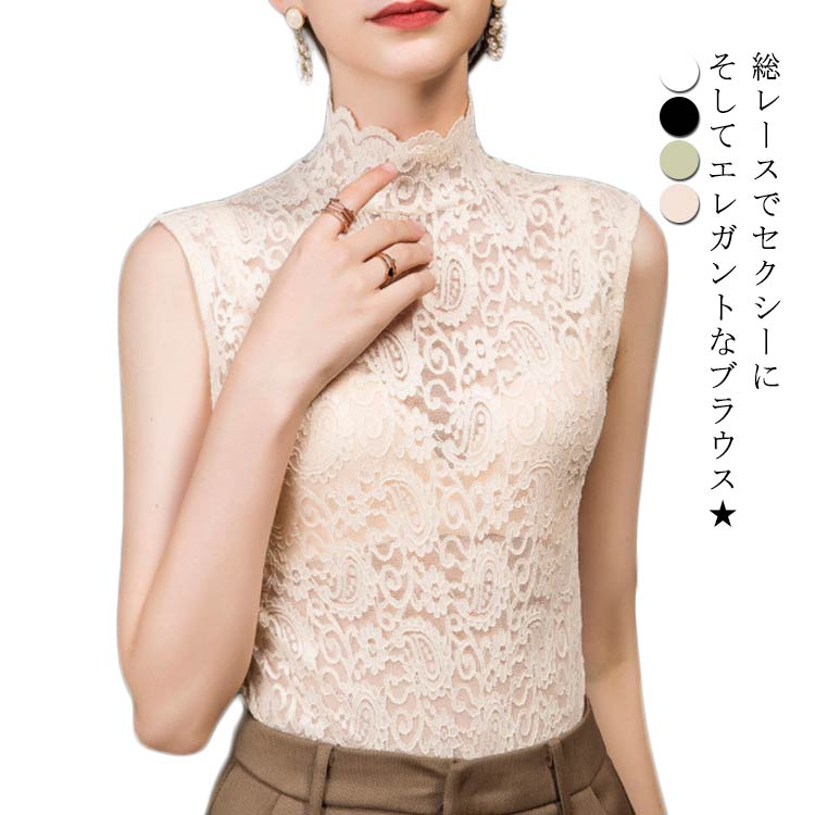 シースルー トップス ブラウス タートルネック ハイネック 花柄レース カジュアル フォーマルレディースファッション トップス シャツ ブラウス