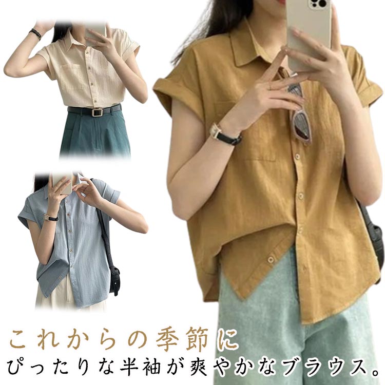 ブラウス シャツ レディース 半袖トップス 春夏 無地 薄手 ブラウスレディースファッション トップス シャツ ブラウス