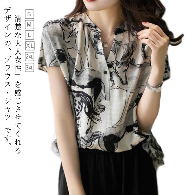 シフォンブラウス 半袖 レディース 春夏 シャツ ブラウス プリント レディースレディースファッション トップス シャツ ブラウス