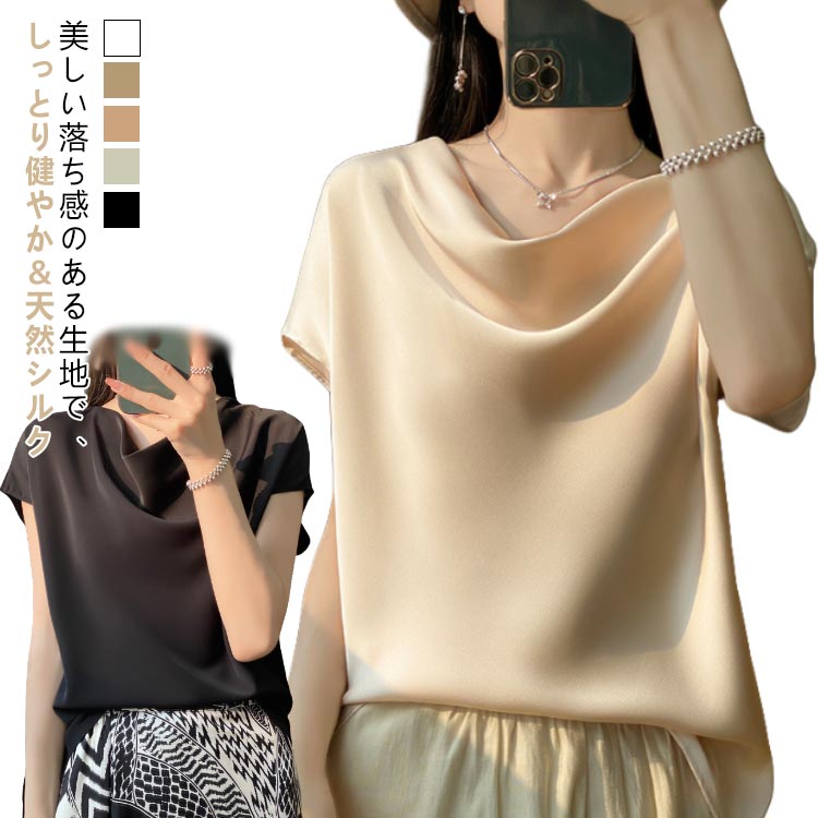 シルクシャツ シルク混 ゆったり 半袖tシャツ フォーマル 半袖シャツ サテンブラウス 光沢 シルクブラウス 楽チン レディース 春夏 20代 30代 40代 サテンシャツ
