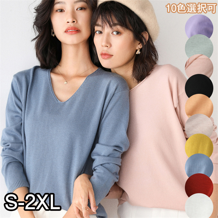 ブラウス トップス レディース Vネック Uネック カットソー 10色展開 S-2XLレディースファッション トップス シャツ ブラウス