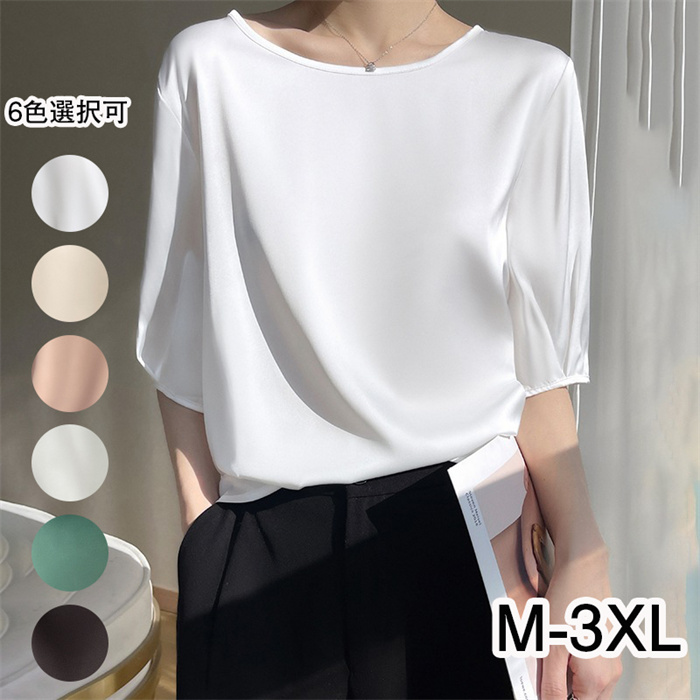 ブラウス トップス レディース シフォン バルーン 五分袖 ブラウスフォーマル スーツ インナー オフィス カジュアル ビジネス 入学式 入園 卒業 卒園 七五三 白 母 ママ M-3XL