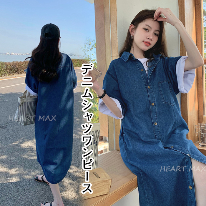 デニムシャツワンピース レディース デニムワンピース マタニティ ワンピース シャッツワンピース デニムアウター オシャレ羽織 ロングワンピース 体型カバー