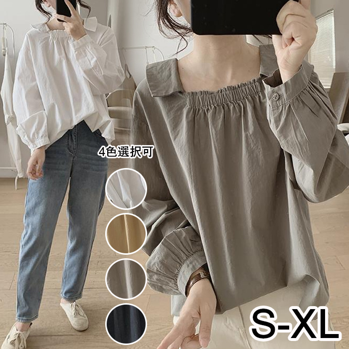 ブラウス 4色展開 スクエアネック トップス 長袖 薄手 シャツ プルオーバー ふんわり ゆったり 春 夏 秋 レディース S-XL