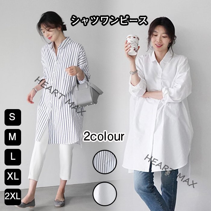 シャツワンピース ロングシャツ ゆったり チュニック シャツワンピ シンプル 体型カバー 春 夏 秋 レディース