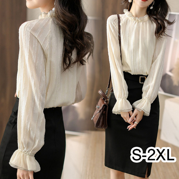 シャツ レディース きれいめ オフィス ブラウス 長袖 トップス 春 秋 抜け感 大きサイズ 体型カバー 可愛い シンプル エレガント 春夏秋 韓国風 通勤 おしゃれ 定番 お呼ばれ