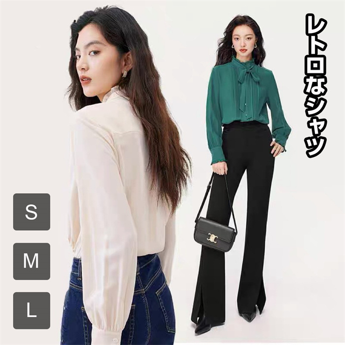 2023新作 ビンテージシャツ レディース シャツ きれいめ オフィス シフォンシャツ ブラウス 長袖 トップス 春 秋 可愛い 抜け感 大きサイズ 体型カバー 可愛い シンプル ビジネス