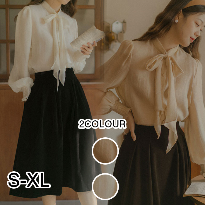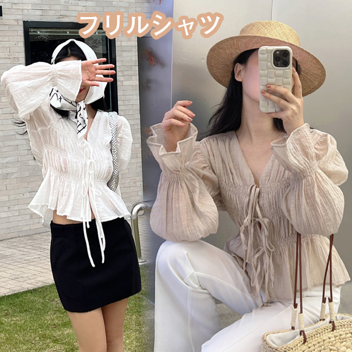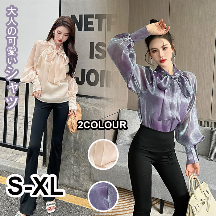 2023新作 シャツ レディース パフスリーブ シャツ 透明感あり 蝶結び カシュクール シフォン 長袖シャツ レディース ブラウス チュニック 体型カバー 可愛い お洒落 上着 トップス
