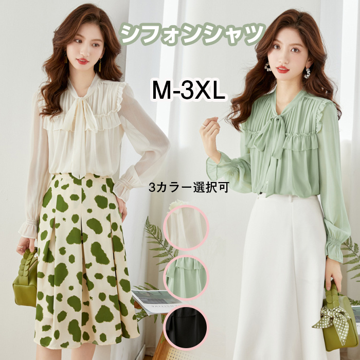 2023新作 シャツ レディース きれいめ シフォンシャツ ブラウス 長袖 トップス 春 秋 可愛い 抜け感 大きサイズ 体型カバー シンプル エレガント 春夏秋 韓国風 通勤