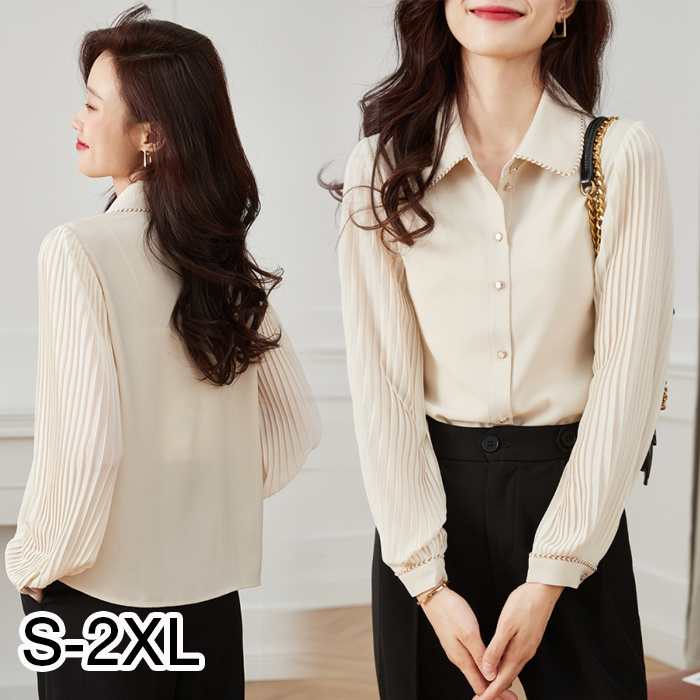 ブラウス シャツ レディース トップス 長袖 ゆったり 大きいサイズ 襟付き 春秋 羽織もの お洒落 上着 トップス 春秋 カジュアル 通勤 オフィス OL ベージュ S~2XL