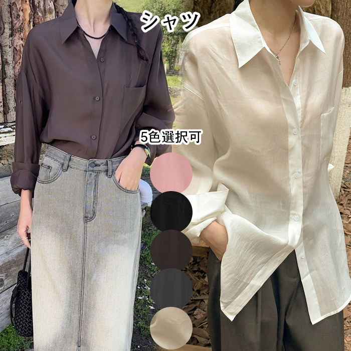 シャツ レディース カジュアル シアーシャツ ブラウス 長袖 オープンカラー UVカット 冷房対策 プルオーバー ゆったり トップス きれいめ 無地 カジュアル かわいい 春 夏 秋
