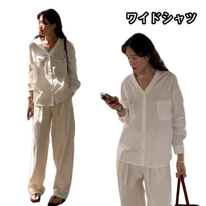 ワイドシャツ レディース カジュアル ホワイト カット 冷房対策 プルオーバー ゆったり トップス きれいめ 無地 カジュアル かわいい 春 夏
