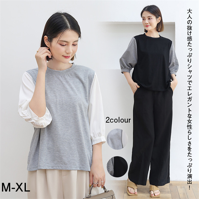 ブラウス レディース シャツ 七分袖 半袖 夏服 レディース トップス チェック柄 柔らか 着痩せ かわいい カットソー 普段着 洋服 ファッション 婦人服 おしゃれ