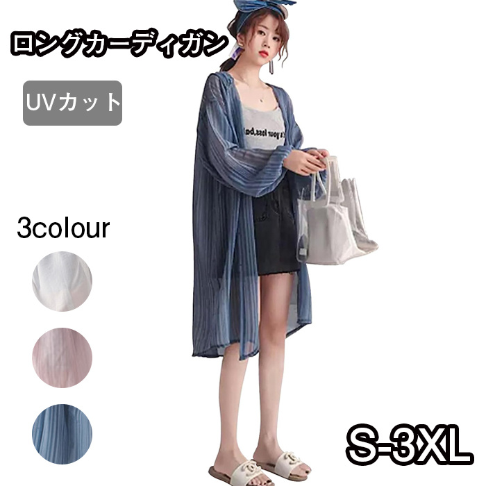 ロングカーディガン レディース UVカット服 トップス ロングシャツ 長袖 バルーンスリーブ ボタン 半透明 薄手 紫外線対策 柔らかい素材 軽量 ゆったり 日焼け防止服 無地