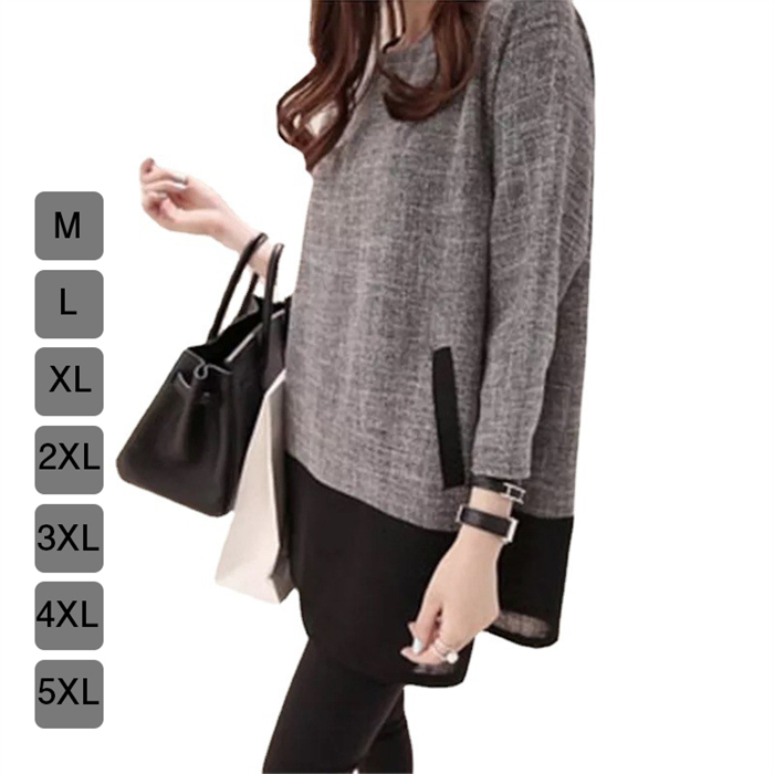 チュニック ワンピース トップス ブラウス レディース ツイード 配色 切り替え 体型カバー M~5XL