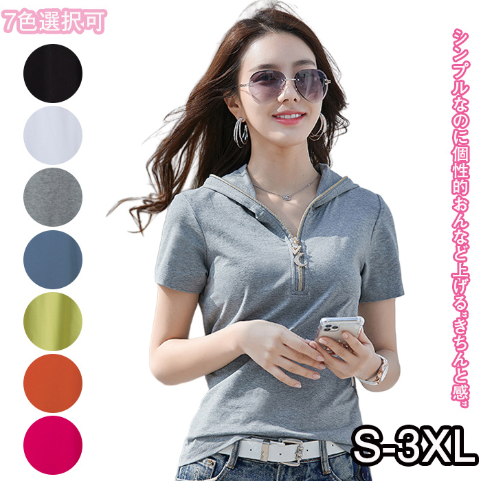 パーカー レディース 夏服 半袖フード付き ベスト プルオーバー プルオーバーパーカー 夏 トップス Tシャツ 無地 カットソー スリム Tシャツ レディース トップス 通勤 おしゃれ