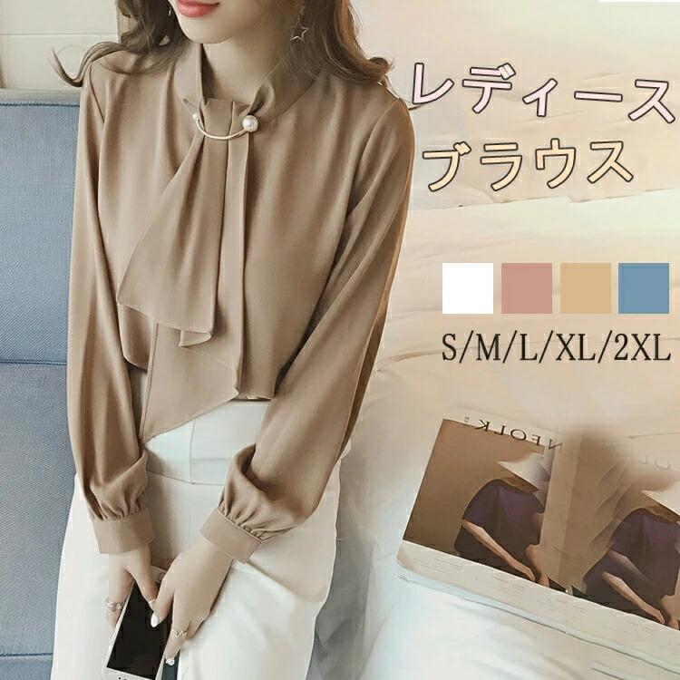 ブラウス シャツブラウス トップス レディース 長袖 春夏 ネクタイ付き 無地 通勤 オフィス ゆったり シンプル カジュアル コーデ 着まわせる