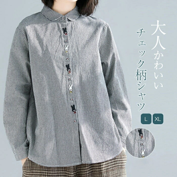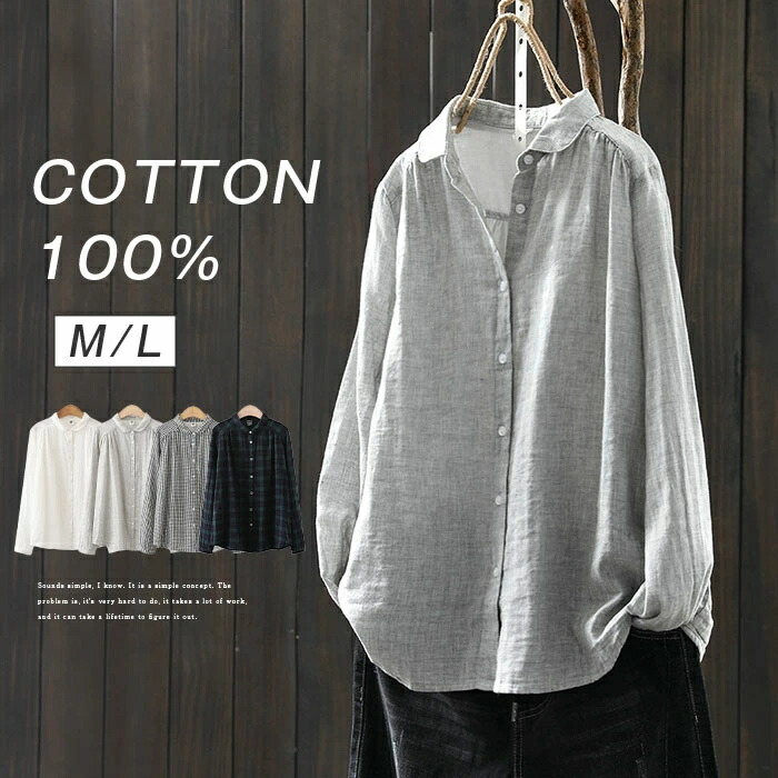 シャツ レディース 長袖 カジュアル コットン100% 丸襟 ストライプ ギンガムチェックレディースファッション トップス シャツ ブラウス
