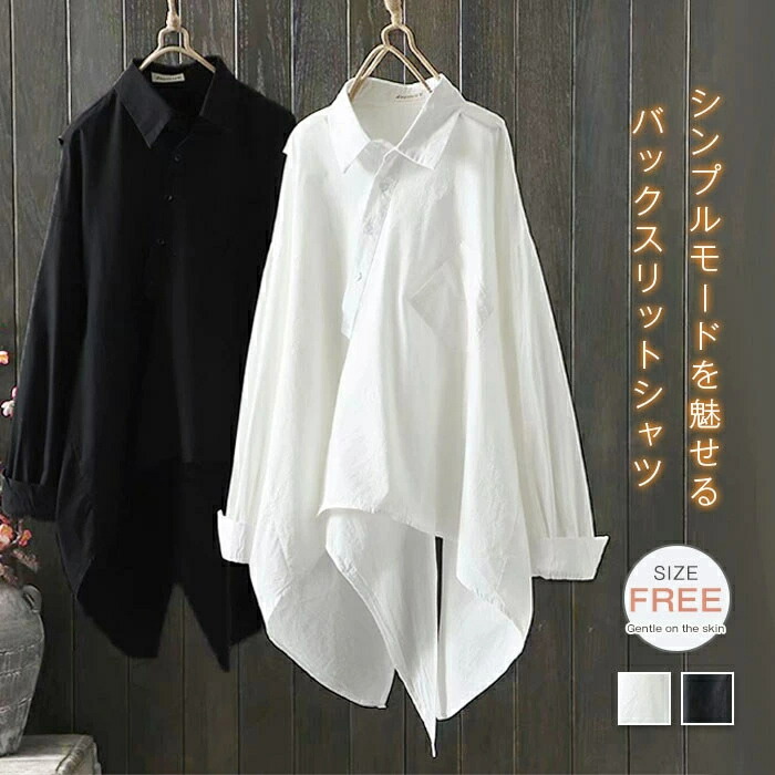 人気のバックデザインシルエットが上質な綿混生地で登場 大胆にとったバックスリットがとにかくお洒落レディースファッション トップス シャツ ブラウス