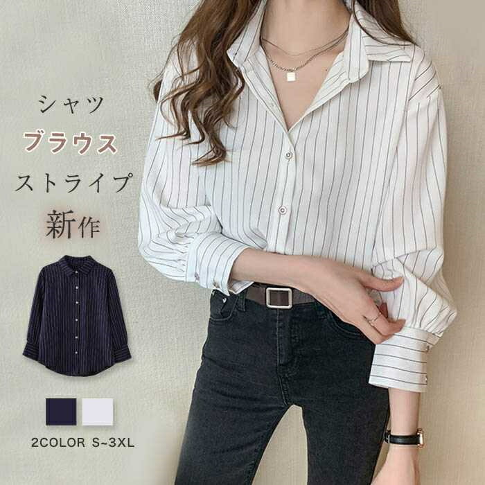 ブラウス レディース おしゃれ 長袖 春夏 シャツブラウス きれいめ シャツ ブラウス トップス スタンダードカラー オフィス ビジネス カジュアル ストライプ
