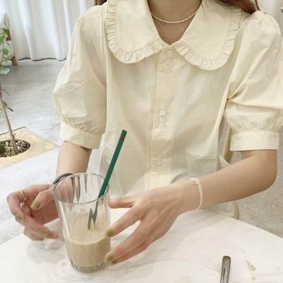 トップス ブラウス パフスリーブ フリル シャツ 襟付き 半袖 レディース 個性的 前開き きれいめ 上品 О 通勤 オフィス シンプル ガーリー ロリータ 春 秋 夏 こなれ感 無地