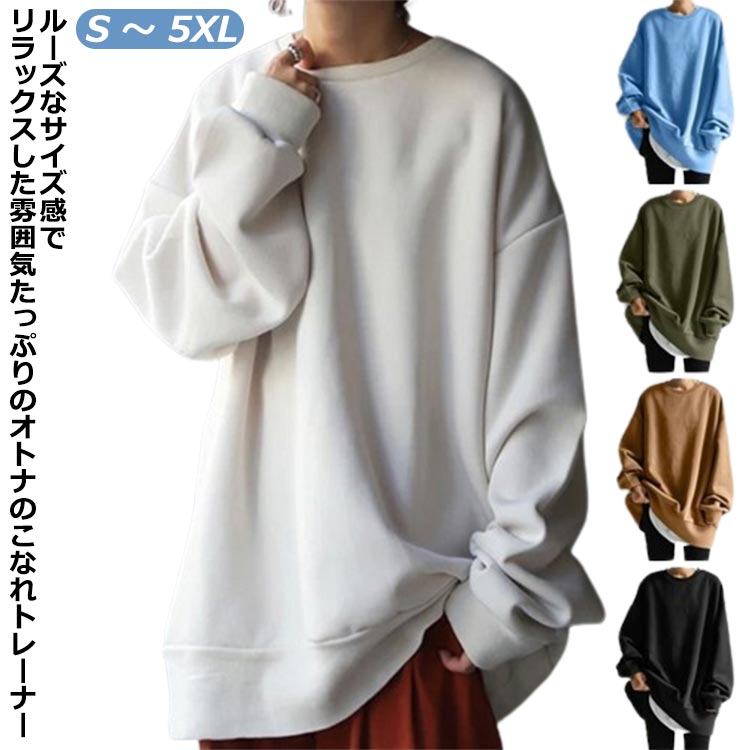 トレーナー スウェット プルオーバー レディース ロング ロング丈 トップス チュニック 長袖 ゆったり 大きいサイズ