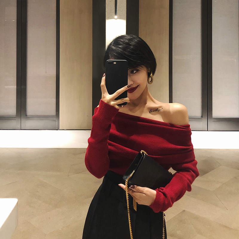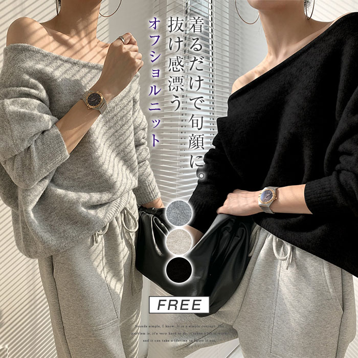 ニット オフショルダー レディース 長袖 オープンショルダー セータートップス フェミニン 着回し シンプル おしゃれ 大人 カジュアル こなれ感 春 秋 柔らかい 個性的 トレンド感