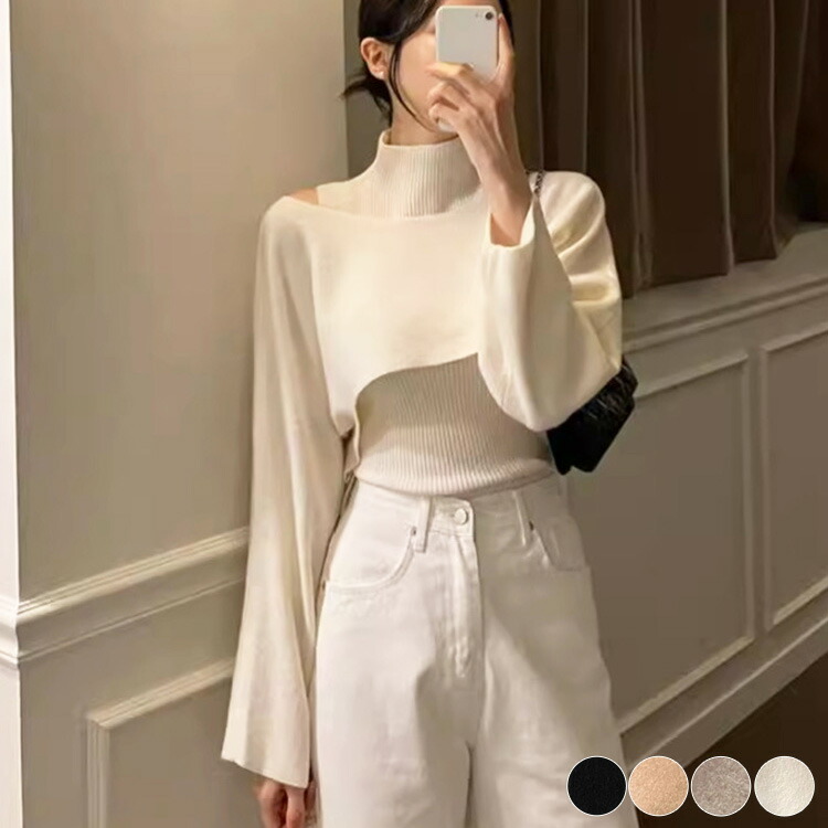 ニット レディース トップス 韓国 セット ハイネック タンクトップ ショート丈 クロップド丈 セーター おしゃれ 秋冬 秋 冬 カジュアル 大人 無地 レイヤード
