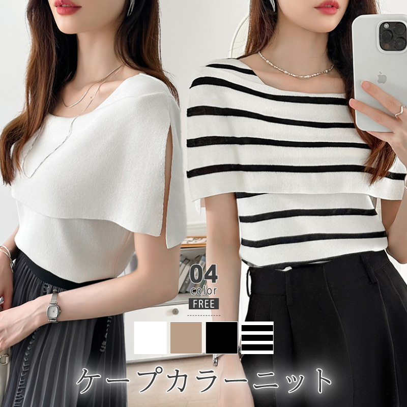 サマーニット ノースリーブ レディース ケープカラー トップス ケープ ケープニット ニット ノースリーブニット 無地 柄 ボーダー スリット ボートネック オフィス オフィスカジュアル きれいめ