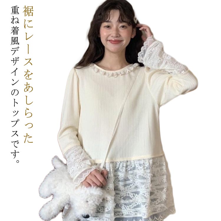 レース 袖 裾 レースインナー トップス レイヤード レディース ニット ニットトップス 重ね着 きれいめ