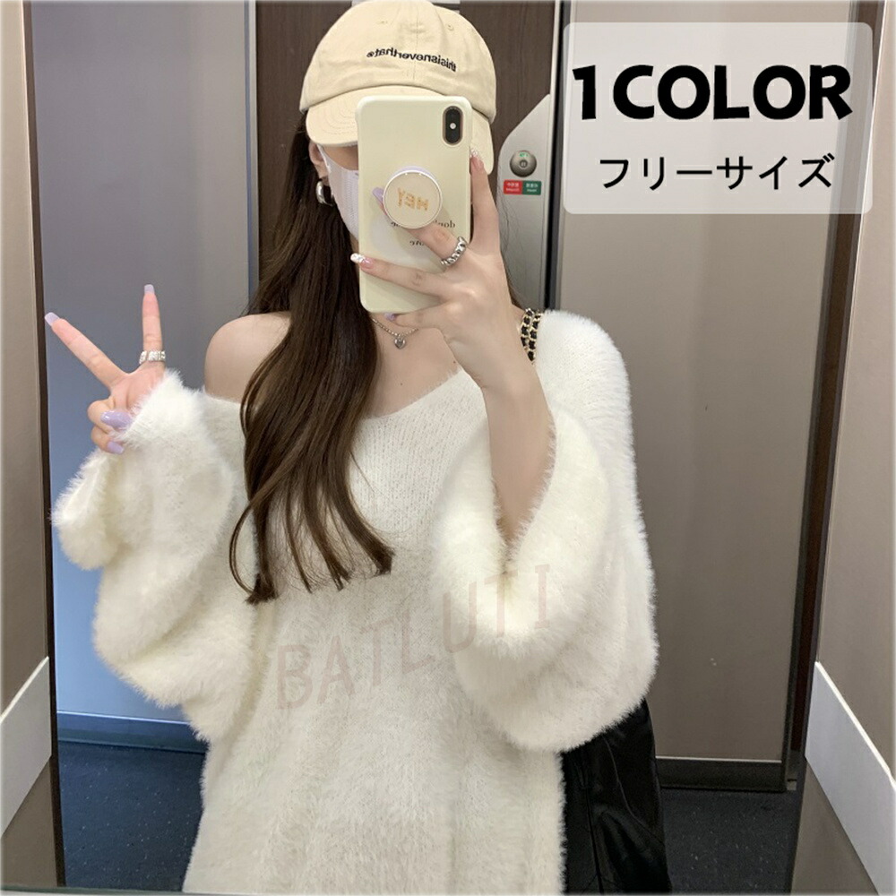スウェットライクニット ニット スウェット オフショルダー 長袖 オープンショルダー セータートップス